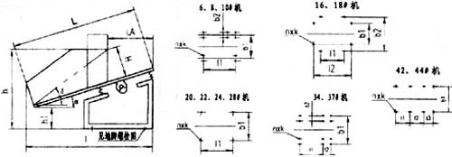 吊二型機(jī)外型與安裝簡(jiǎn)圖(7、9、11、13、15、17、19、33、35、38、43#機(jī))